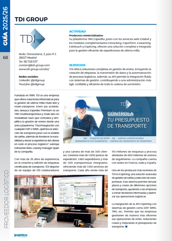 TDI mostrará sus novedades tecnológicas en Live Logistics Congress 2025 Madrid
